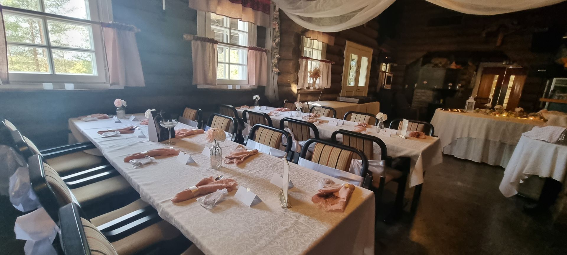 Korpiselkätalo luo hääjuhliin ainutlaatuisen tunnelman. Pyöröhirsien lämpö, luonnonrauha ja suuri juhlatila baaritiskeineen ja tanssilattioineen muovautuvat juuri teidän näköiseksenne. Suurtalouskeittiö, majoitus ja mahdollisuus myös ulkoilmaohjelmaan tekevät juhlapäivästä sujuvan – ja ikimuistoisen. Ei A-Oikeuksia joten omat nesteet mahdollista ottaa oman maun mukaan tai ilman.